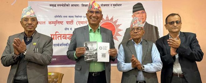स्वास्थ्यसमाचार / प्रतिनिधिसभा निर्वाचन-२०८२ नजिकिँदै नेपाल कम्युनिष्ट पार्टी (एमाले)ले रुपन्देही क्षेत्र नं. २ का लागि विस्तृत प्रतिबद्धतापत्र सार्वजनिक गरेको छ। उम्मेदवार विष्णुप्रसाद पौडेलको नेतृत्वमा सार्वजनिक गरिएको घोषणापत्रमा शिक्षा, स्वास्थ्य, रोजगारी,...