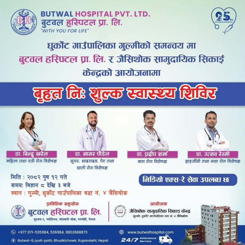 अध्यक्ष पौडेलले बुटवलमा स्वास्थ्य क्षेत्रको स्तरोन्नती र नागरिकहरुको स्वास्थ्य उपचारका लागि सबै पक्षका वीचमा सहकार्य हुनु पर्नेमा जोड दिनु भयो ।