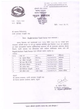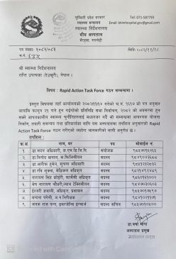 अस्पतालहरूका टोली यस प्रकार रहेका छन्: लुम्बिनी प्रदेशका सबै प्रादेशिक तथा जिल्ला अस्पतालमा आ–आफ्नो अस्पताल प्रमुख वा मेडिकल सुपरिटेन्डेन्टको नेतृत्वमा विशेषज्ञ चिकित्सक सहित ¥यापिड रेस्पोन्स टिम गठन गरिएको छ।