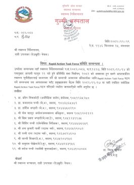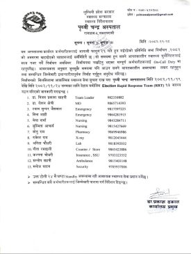 ¥यापिड रेस्पोन्स टिममा विभिन्न विभागका विशेषज्ञ चिकित्सक, नर्सिङ प्रशासक, आकस्मिक कक्ष इन्चार्ज, औषधि व्यवस्थापन प्रमुख तथा आवश्यक प्राविधिक जनशक्ति समावेश छन्। निर्वाचन अवधिभर अस्पतालमा आउने आपतकालीन बिरामीको उपचारमा उक्त टोलीले नेतृत्वदायी भूमिका निर्वाह गर्नेछ।
