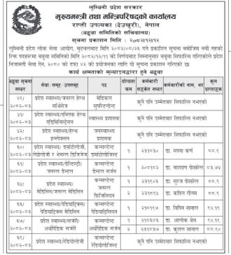 स्वास्थ्यसमाचार/  लुम्बिनी प्रदेश सरकारले स्वास्थ्य सेवाका नवौँ तहका रिक्त पदहरूमा कर्मचारीहरूको बढुवा सिफारिस गरेको छ।