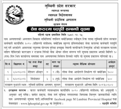 थप जानकारीका लागि अस्पतालको आधिकारिक फेसबुक पेज तथा वेबसाइट www.lphospital.gov.np मार्फत जानकारी लिन सकिने जनाइएको छ।