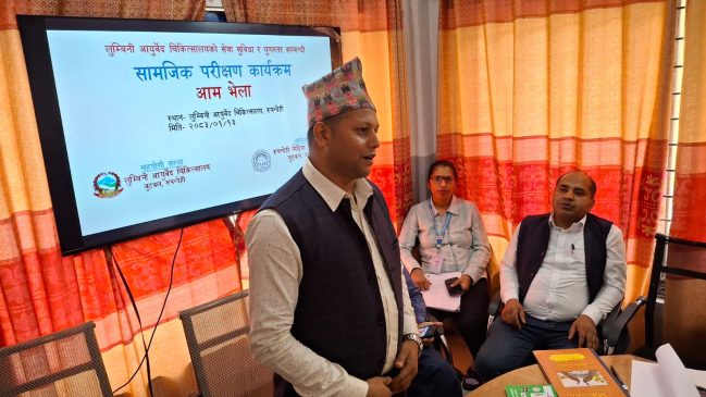 लुम्बिनी आयुर्वेद चिकित्सालयमा सामाजिक परीक्षण : सेवा प्रभावकारी, जनशक्ति र पूर्वाधार मुख्य चुनौती
